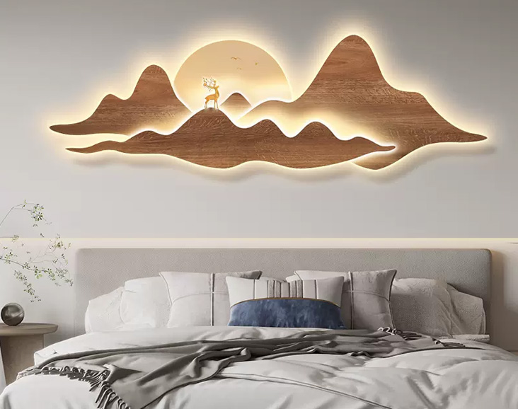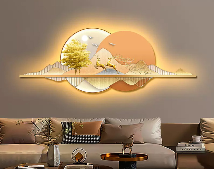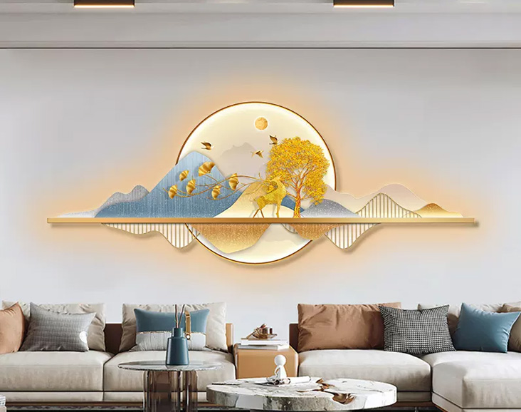 侘寂風(fēng)客廳裝飾畫高檔大氣背有靠山led燈壁畫輕奢沙發(fā)背景墻掛畫