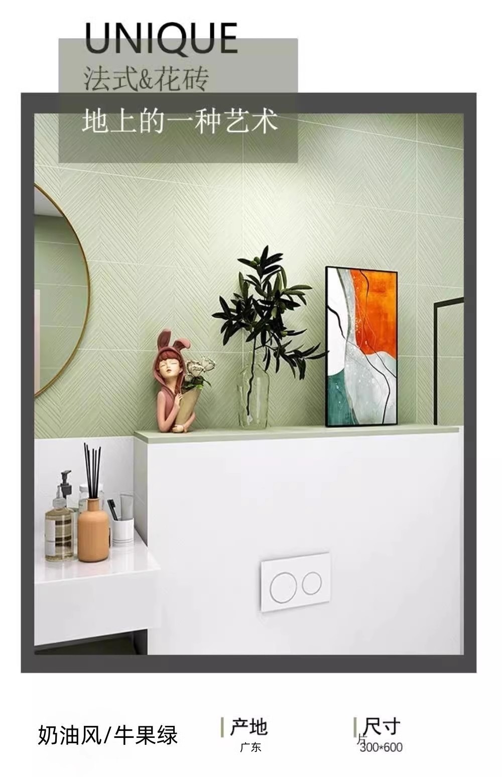 牛油果綠衛(wèi)生間墻磚300x600廚房廁所陽(yáng)臺(tái)瓷磚 洗手間浴室防滑地磚